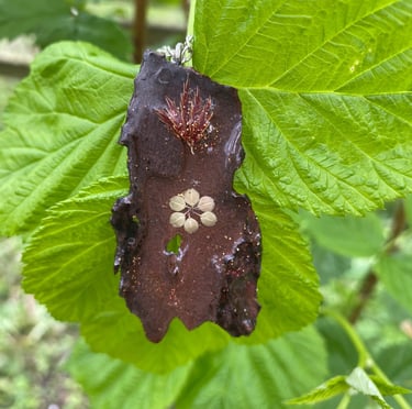 Une feuille oubliée, une écorce tombée, une fleur ignorée... Enchâssés dans la résine,